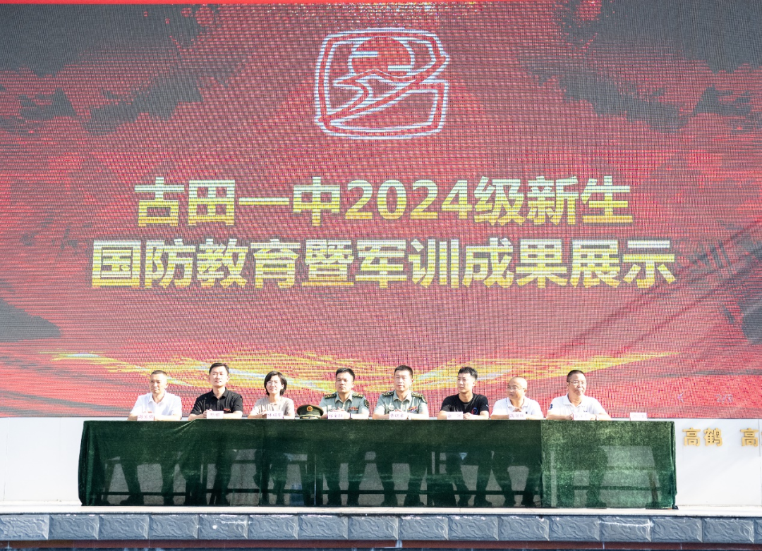 宁德军分区战建处处长曹晓东、古田县县委常委兼人民武装部部长郑金阳、宁德市教育局体卫艺科余淞、古田县教育局局长林丽琴、副局长高锦腾以及古田一中党总支副书记、校长陈耀等校领导与全体2024级师生齐聚一堂,共同见证了这一荣耀时刻。副校长彭时勤以他稳健有力的声音,引领着整个大会的进程,使这场盛会更添庄重。